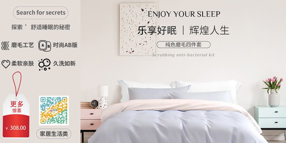 J-普区包邮 水星家纺床上用品纯色磨毛四件套 辉煌人生 2*2.3米